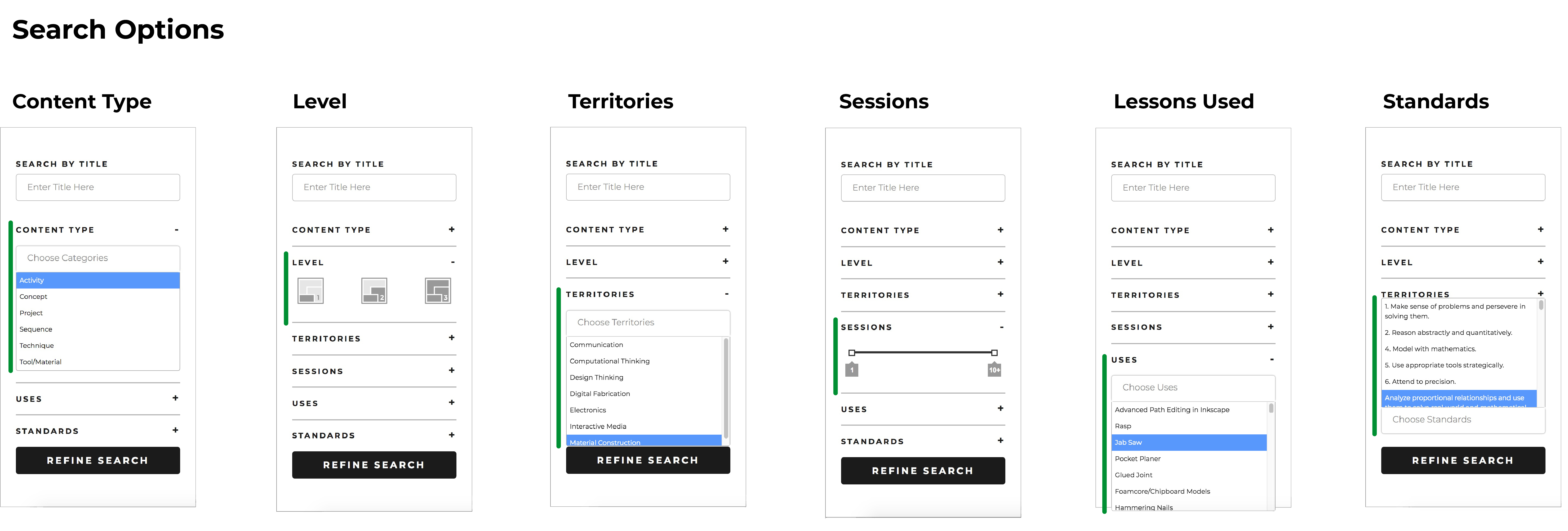 - Content Type: Just want to see what projects we have? Need a specific technique? This is the filter you’re looking for. Select one or more: Activities, Projects, Techniques, Concepts, Tools/Materials, or Sequences.